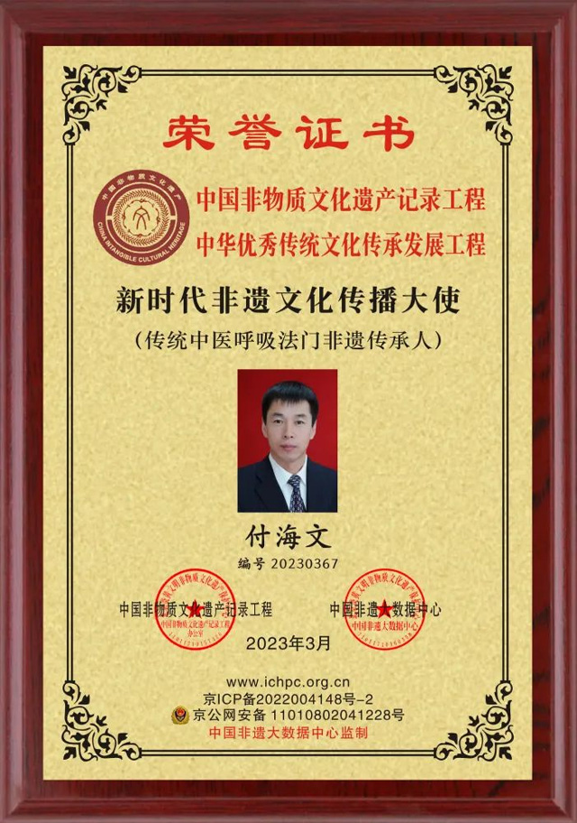 身份榮譽(yù): 世界中醫(yī)藥協(xié)會(huì)中國(guó)分會(huì)會(huì)員;中國(guó)保健科技學(xué)會(huì)自然仿生治療研究會(huì)理事單位;世界肥胖癥研究會(huì)理事單位;搜瘦智庫(kù)——名人;CETTIC纖體講師;二十一世紀(jì)(北京)國(guó)際醫(yī)學(xué)科學(xué)院客座教授,中國(guó)非物質(zhì)文化遺產(chǎn)傳播大使,(傳統(tǒng)中醫(yī)呼吸法門(mén)非遺傳承人)。